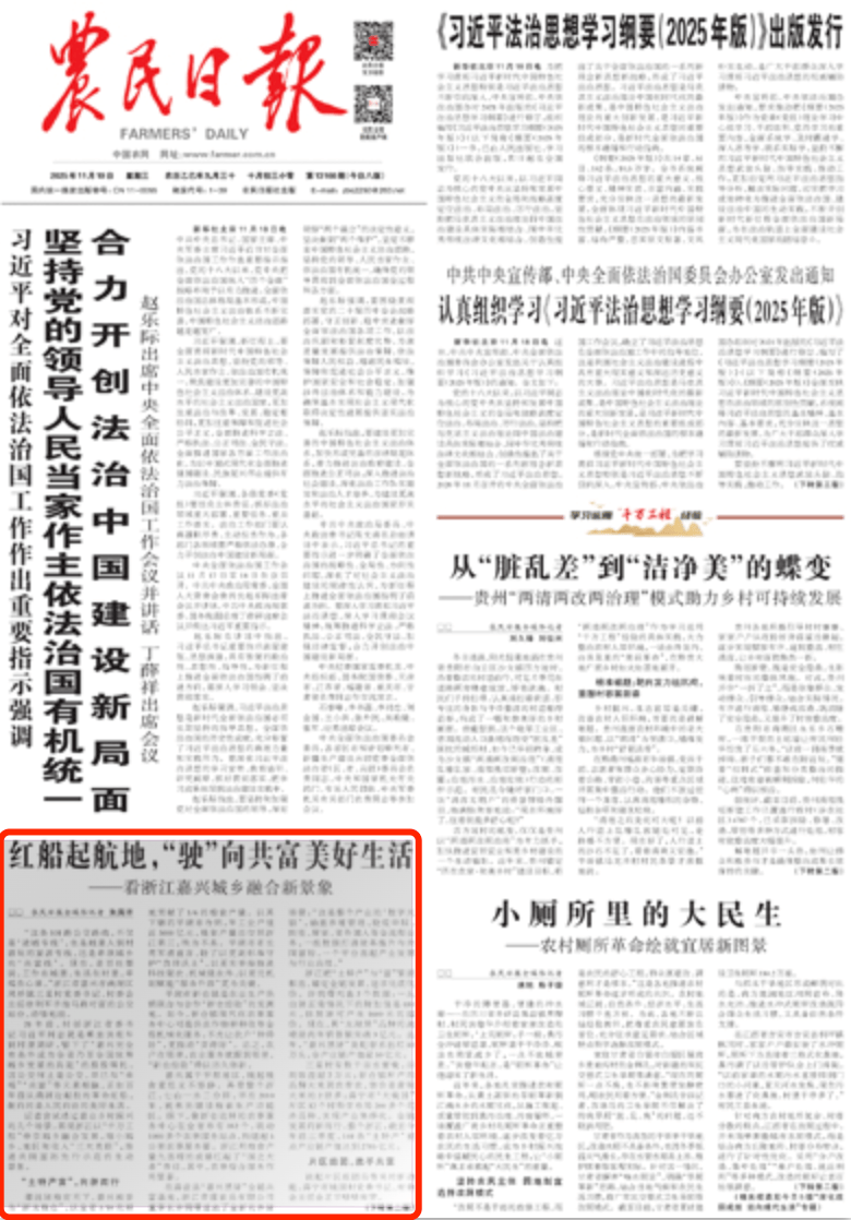发报道《畅享国庆档银幕盛宴》《农夫日报》11月19日刊,三星村等起色案例采用南湖区凤桥镇,程”牵引城乡统一起色出现浙江以“万万工,收入“三大差异”缩幼城乡、地域和,行演示的天真风景饱动联合充实先。