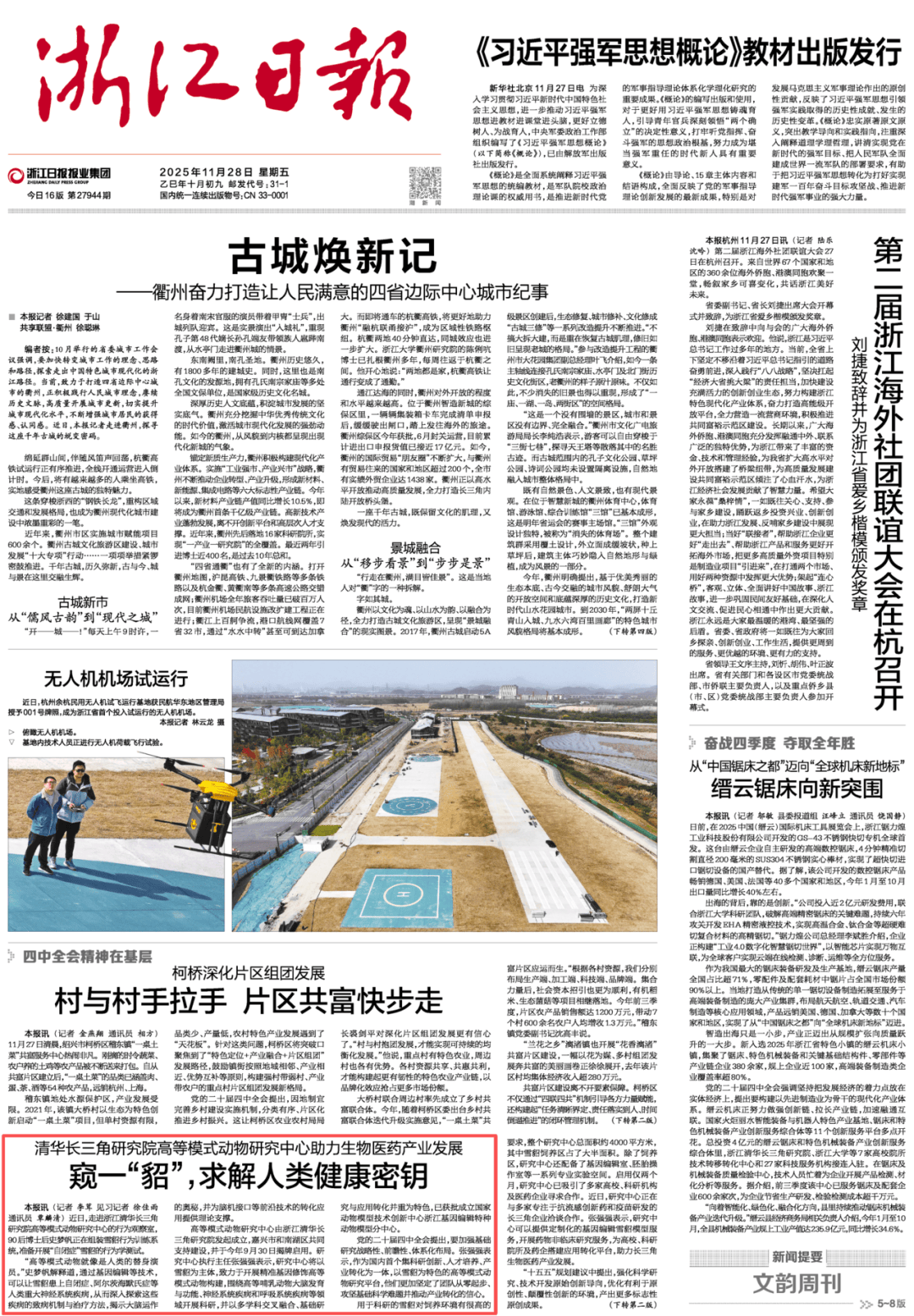 日头版报道《窥一“貂”《浙江日报》11月28,康健密钥》求解人类。指出报道,江清华长三角探索院倡议创建上等形式动物探索核心由浙,区联合援救设置嘉兴市和南湖,30日揭牌启用并于本年9月。