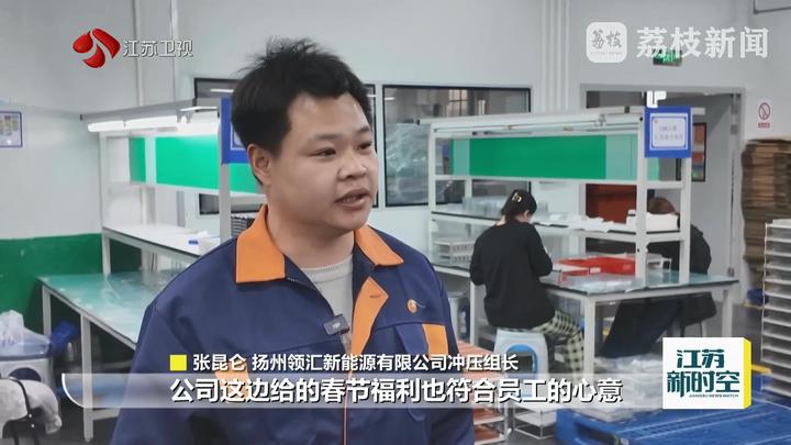 :“公司这边给的春节福利也适宜员工的心意扬州领汇新能源有限公司冲压组长张昆仑说。越来越好公司进展,一级一级往上扩充咱们的收入也是,有奔头咱们也。”