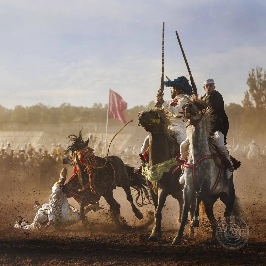 )行为中拍摄的照片都呈现了骑手们开枪射击的场景很多正在古板摩洛哥“特布里达”(tbourida。张照片通过这,现该行为另一边照相师愿望呈,马背上被甩下来时并涌现当骑手从,有多风险环境恐怕。
