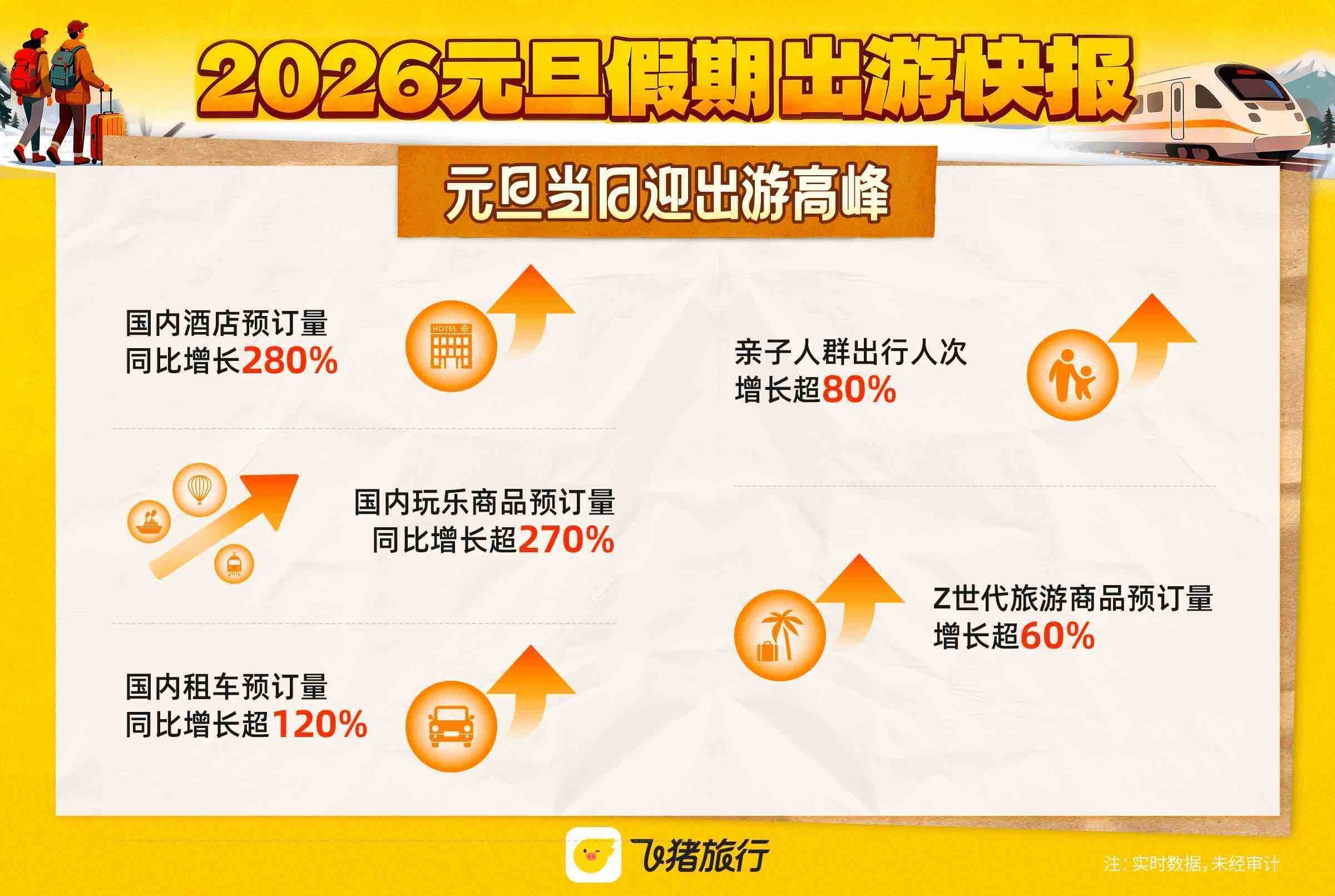 旅游市集炎热开局2026年元旦。3日1月,元旦假期出游疾报》显示飞猪发表的《2026,比伸长超20%、人均消费金额同比昨年伸长超30%消费者出游愿望与消辛苦双双晋升:人均进货件数同。元旦当天1月1日,同比昨年劲增280%飞猪国内旅店预定量,订量同比伸长超270%国内目标地打趣商品预。